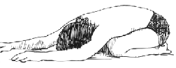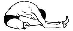 | 5. Forward Bend. A standard classical posture. Use a rope or belt around the bottom of your feet to your hands if you can't reach your ankles. Try to keep your back straight and bend from the hips. | ![]() |