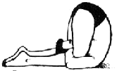 | 9. Forward Bend in Lotus. While still in the same lotus position, interlace fingers behind back, lean forward, trying to place forehead on the floor. Keep arms straight and lift up so they are perpendicular to floor, with palms facing the ceiling (not shown). | ![]() |